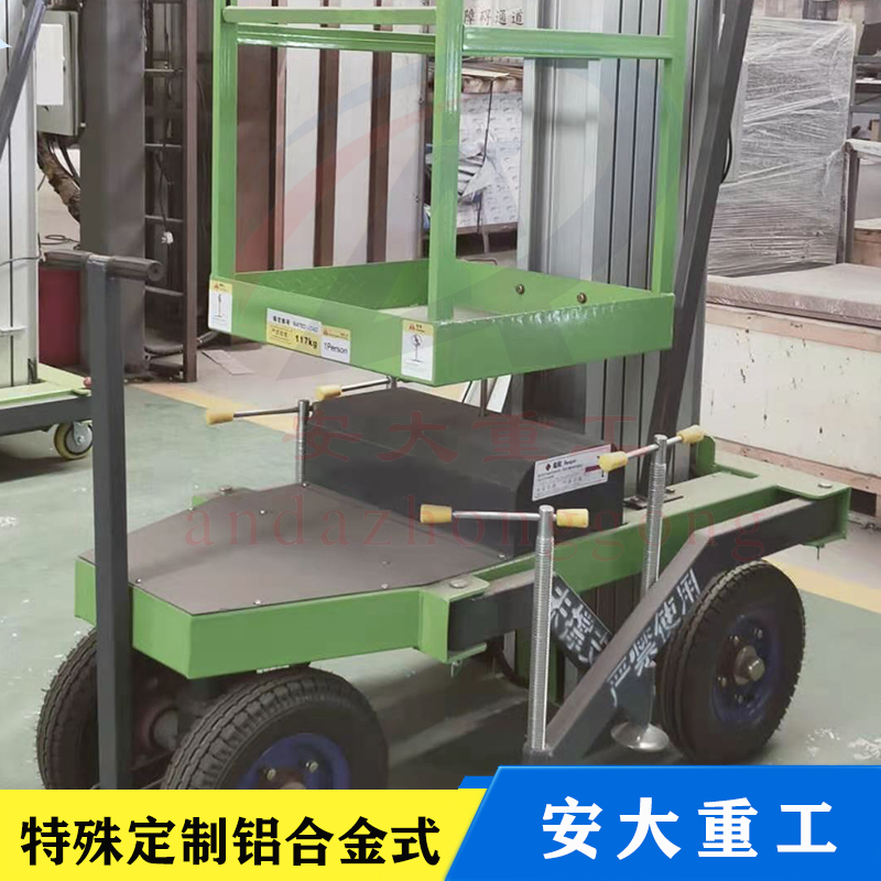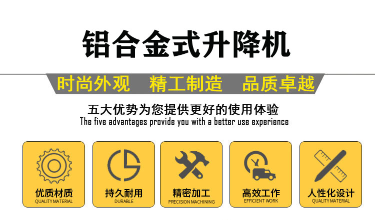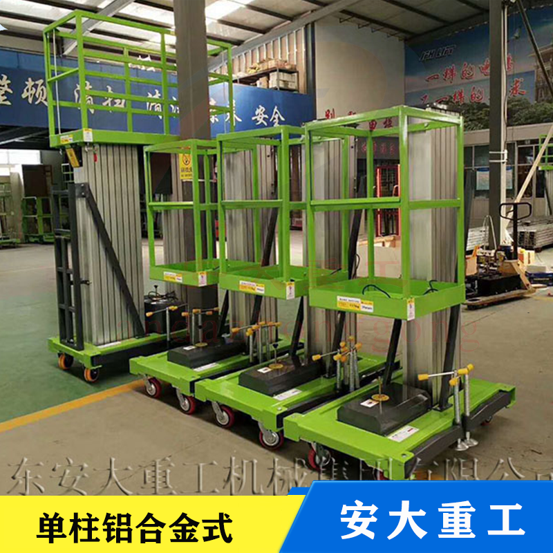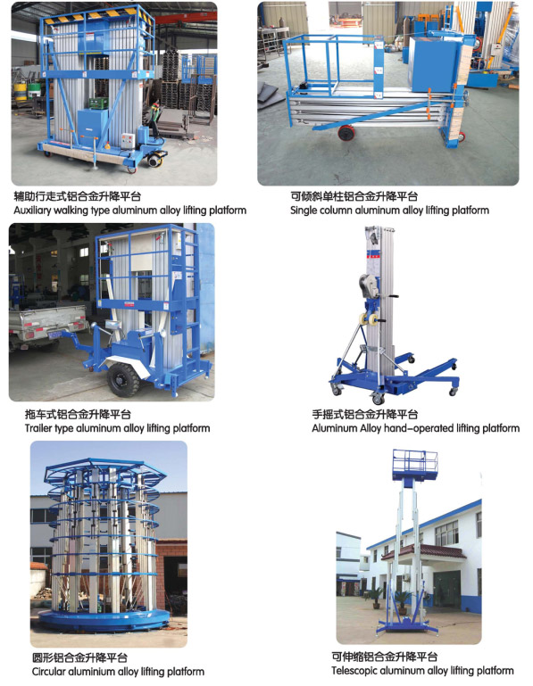 鋁合金式升降平臺采用高強度優(yōu)質(zhì)鋁合金材料,具有造型美觀,體積小,重量輕,升降平穩(wěn),安全可靠等優(yōu)點.